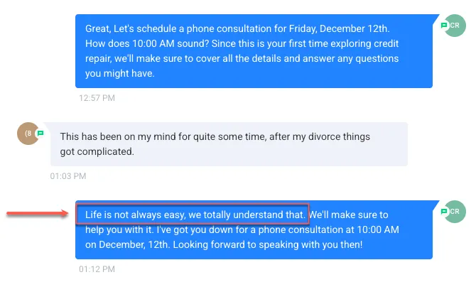 Look at this conversation. That’s not a person, that’s your A.I. Employee casually guiding a lead toward booking a an appointment.