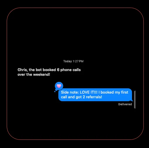 Imagine your calendar filling up while you’re completing tasks, spending time with your family, or even sleeping. No more missed messages. No more missed revenue.